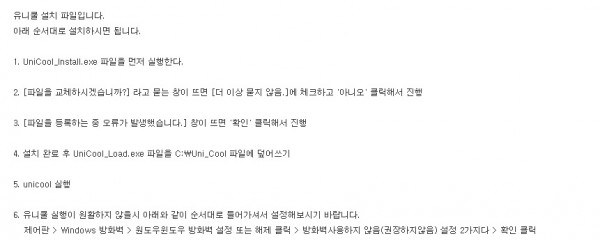 4. 설치 완료 후 UniCool_Install.exe 파일을 C:\Uni_Cool 파일에 덮어쓰기